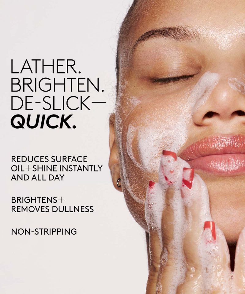 Lather up for fresh. glowing skin with our foaming gel cleanser that instantly improves surface oil and brightens as you wash away dirt. oil and impurities.
