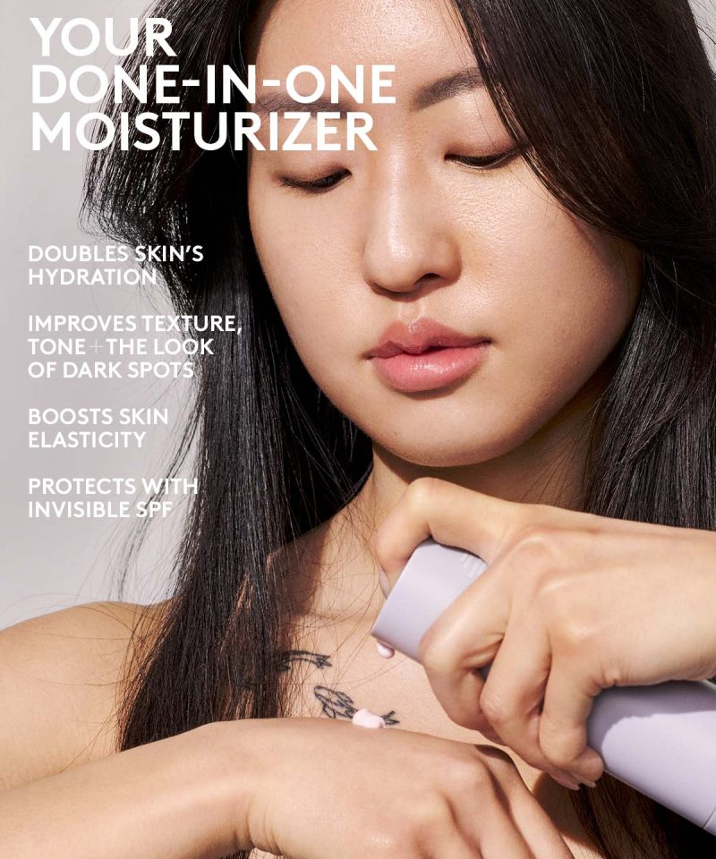 A daily moisturizer with invisible SPF that doubles skin’s hydration and improves texture. tone + elasticity. Powered by Hyaluronic Acid and Niacinamide. Refillable.