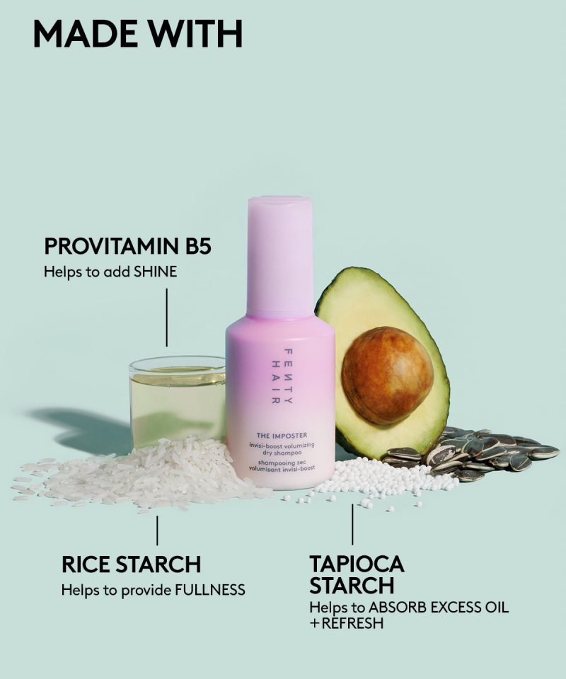 A non-aerosol dry shampoo that stretches washdays. instantly boosts volume + texture. Inspired by Fenty Beauty’s Invisimatte Blotting Powder. it absorbs excess oil without the white cast and works on all hair colors.
